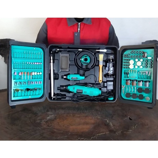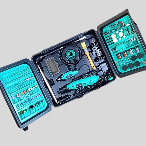 این مدل با ۳۵۰ عدد سری متنوع، پاسخگوی تمام نیازهای کاربر در پروژههای مختلف است. قابلیت تنظیم سرعت از ۷۰۰۰ تا ۴۰۰۰۰ دور در دقیقه، امکان کنترل دقیق بر اساس نوع کار را فراهم میسازد. همچنین، خرطومی منعطف و گیره بغل میز تلسکوپی، آزادی عمل و دقت بیشتری در انجام کارهای ظریف و پیچیده فراهم میکند. قابلیت استفاده از کولت تا قطر ۳ میلیمتر نیز باعث میشود طیف وسیعی از ابزارها با دستگاه سازگار باشند.